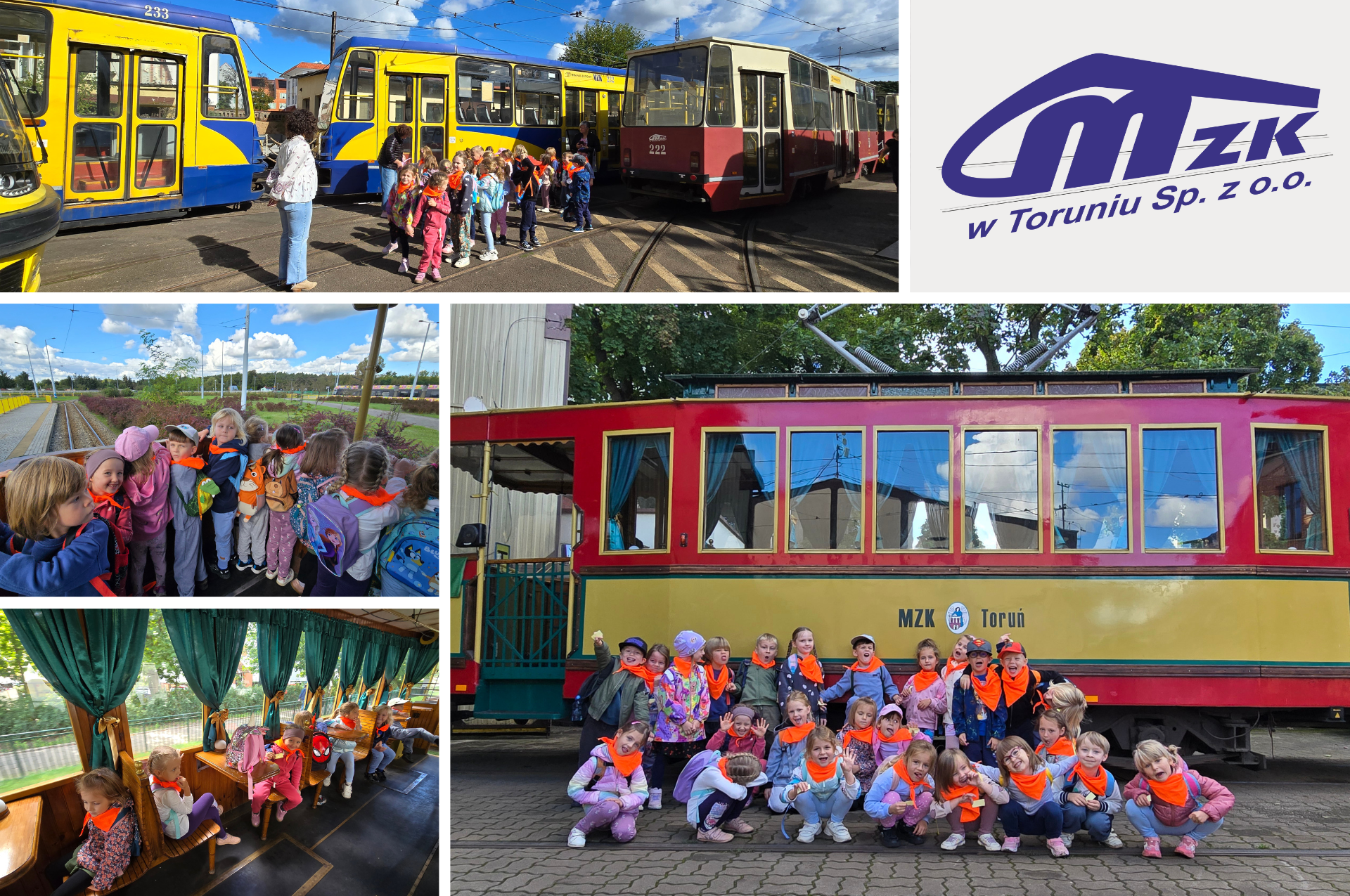 Dzięki sprzyjającej pogodzie mogliśmy połączyć edukację z zabawą. Najpierw dzieci uczestniczyły w zajęciach edukacyjnych i zwiedziły Izbę Pamięci Toruńskich Tramwajów. Następnie spacerowaliśmy po terenie zajezdni, gdzie mali goście mogli zobaczyć, jak wygląda praca tramwajów, kiedy nie kursują po toruńskich ulicach.